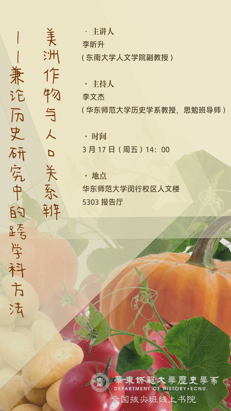 题 目:“美洲作物与人口关系辨——兼论历史研究中的跨学科方法”