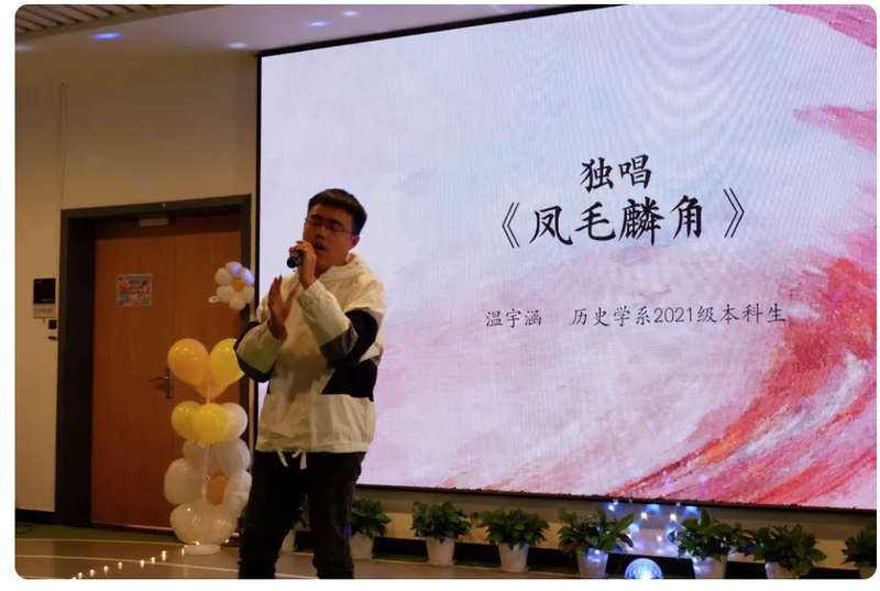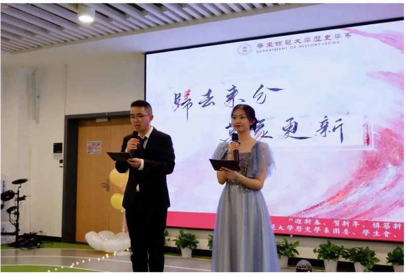 联欢会伊始,孟钟捷老师在云端为联欢会致贺词,孟老师勉励新同学,要将生活中所遇到的艰难险阻化为前进的动力,不断追寻人生的跃进。同时,孟老师寄语新学期,鼓励同学们在新的学习环境下培养创新精神,成为追求卓越的历史学子。