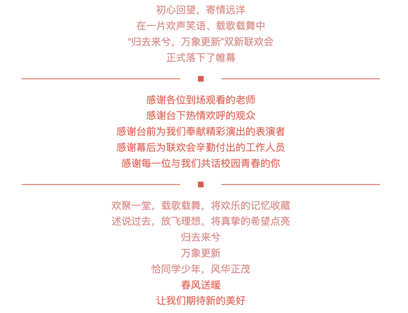值此春和景明之时,det365在线举办“归去来兮,万象更新”双新联欢会,新朋旧友齐聚,开启春天的故事,谱写新的进行曲,共创属于青春的盛会!
