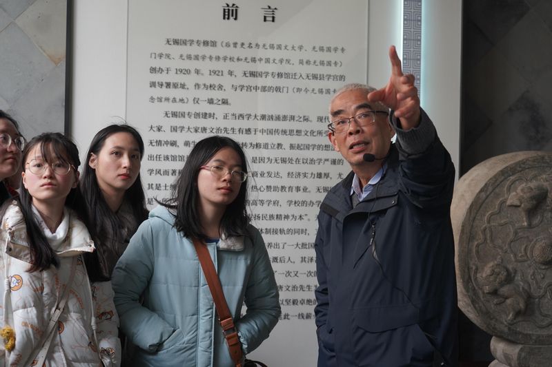 无锡国立专科学校旧址是本次考察的终点。据江南大学刘桂秋教授介绍,国专创始人唐文治先生倾其半生创设无锡国专,使之成为一所历经20世纪上半叶的重重战火而未中断的国学专修学校。国专师生在颠沛流离的旅途中坚持讲课听课,以坚韧的意志和切实的行动维系着国难年代的学术薪火,让同学们深为感动,唐小兵老师提及齐邦媛在《巨流河》写道的抗战期间南开中学、中山中学坚持办学的如歌往事。国专的精神哺育了一批学界的大家,如史学家蒋天枢、文字学家唐兰、国学家饶宗颐、书法家王遽常等等。华师大det365在线前辈、史学大家吕思勉和著名经学史家周予同等先生也曾在国专任教。唐小兵老师还补充讲述了西南联大的往事,指出正是战争年代学人的共同努力,造成了群星闪耀的大师年代。