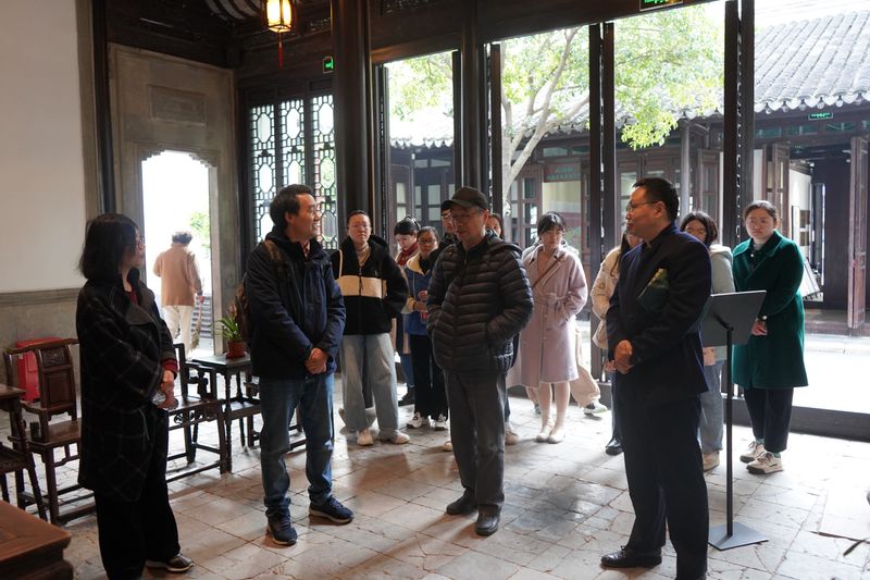 第二天,“思勉班”的同学们在钱锺书表弟、高攀龙后人高大千先生的指引下,徒步前往钱锺书故居参观。钱锺书故居位于七尺场,建筑群包括三进四合院和一个独立的图书馆,其中陈列有钱锺书的毕业证、印章等旧物以及钱氏族谱。同学们在参观中了解到,钱锺书是当代最为杰出的文化学者之一,他的代表作《围城》被誉为中国现代文学的经典之作,而《管锥编》则以其细密的考证留名于世。在参观过程中,同学们着重关注钱锺书的家族历史和故居文化。