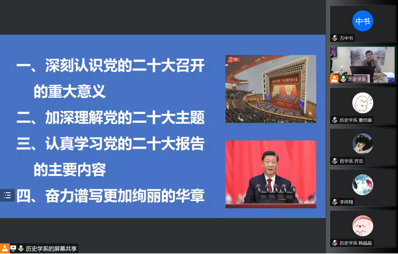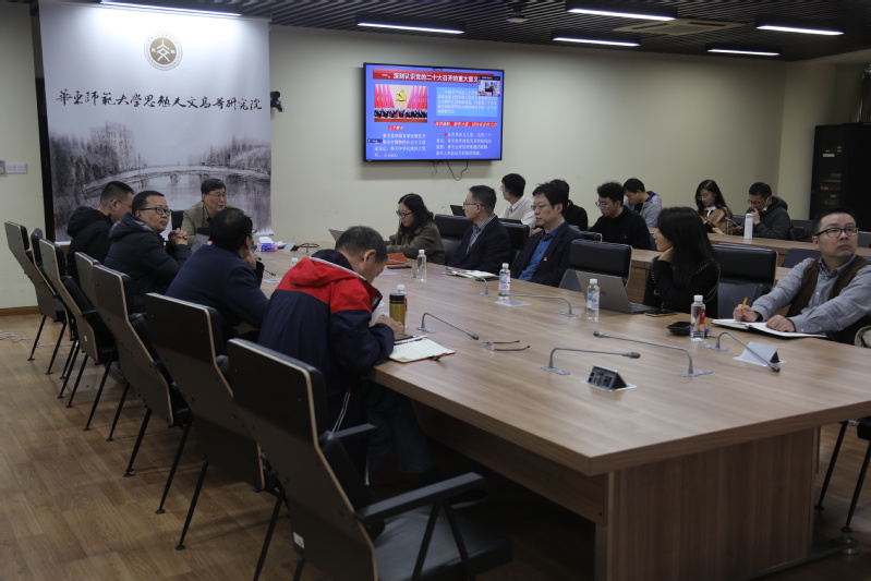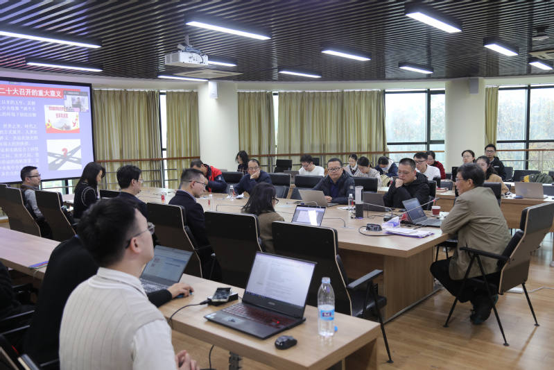 2022年11月17日下午,det365在线联合中文系、哲学系、思勉人文高等研究院开展“学习贯彻党的二十大精神”联组学习,华东师范大学终身教授、全国著名党史党建专家、上海市学习贯彻党的二十大精神专家宣讲团成员齐卫平教授应邀作专题报告。文、史、哲、思勉的党政班子成员、师生党支部书记和委员在人文楼5303报告厅参加学习,其他师生党员通过腾讯会议线上参加学习。会议由中文系党委书记吕志峰老师主持。