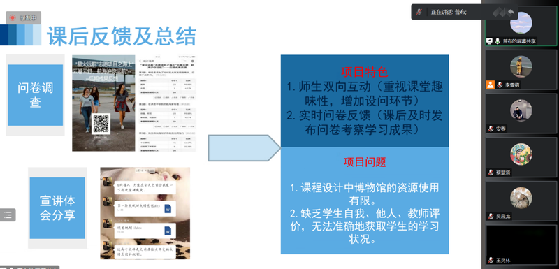 此次分享交流会让同学们在课程选题、时间管理、内容设计和讲解技巧等方面收获颇多;后续大家也将定期沟通交流,群策群力为项目顺利开展提供充足的智力支持。