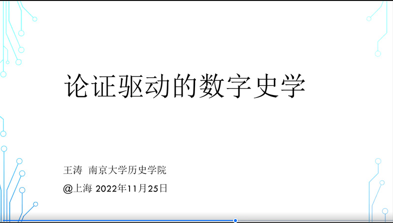 会议下半场,王涛老师在线上分享了数字史学近些年在史学研究中的运用情况。随着技术的发展,史学工作者的思维方式、研究方式,也肯定会受到这种技术改变的影响。数字史学作为一种方法论,在面对一些需要量化的数据材料时,无疑是一种极好的数字工具。王老师指出,数字工具可以帮助我们打磨出要问的问题,是帮助我们找出问题和得出结果的一种方式,但它们不是最终的结果。