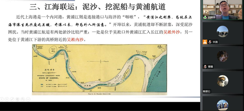 12月14日下午两点,华东师范大学2022年第81场百场校级学术讲座暨华东师范大学det365在线第11场“大夏中国史论坛”前沿讲座《自然、技术与航道:海洋视域下上海港发展的再分析(1870s-1930s)》在线上举行。讲座由华东师范大学det365在线阮清华教授主持,上海电机学院刘炳涛教授主讲,来自华东师大、复旦、同济等诸多兄弟院校师生百余人全程参加。