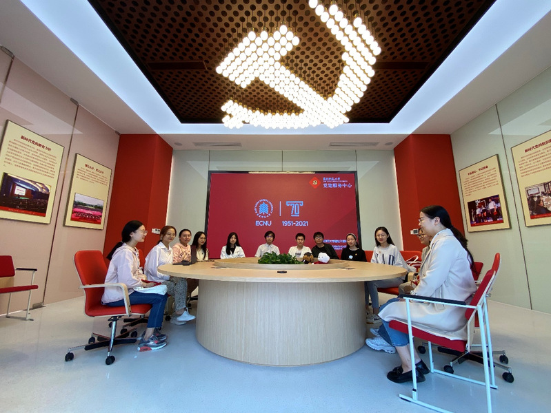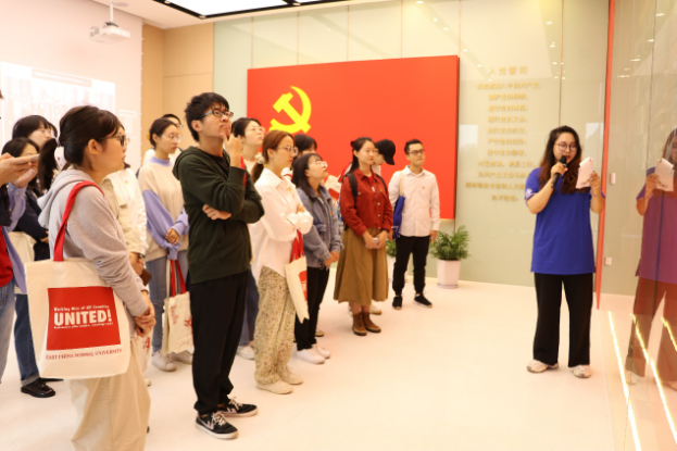 在展览的最后,讲解员特别提到,在2018年3月召开的华东师范大学第十三次党代会上,学校明确了到本世纪中叶把华东师范大学建成世界一流大学的目标和发展战略,2051年,也正值华东师范大学建校一百周年。党员们深深的体会到:这个战略距离我们并不遥远,它需要我们每一代华师学子脚踏实地地追求,才能够实现,也需要一代代党员同志们切实发挥自己的先锋模范作用。