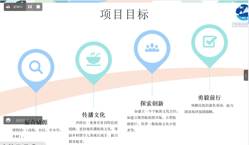 为了进一步服务航海强国战略,为中西部地区中小学生拓宽航海文化视野,我系与上海中国航海博物馆(以下简称“中海博”)合作开展星火远航”志愿者项目。2023年1月9日下午,“星火远航”志愿者项目通过线上举办第一期专题培训会。“中海博”社会教育部职员、科普教育专员、志愿者项目负责人王灵林老师作“遇见‘中海博’”主题报告。培训会由我系蔡慧贤老师主持,我系和孟宪承书院多个专业本科生团队成员线上参加培训。
