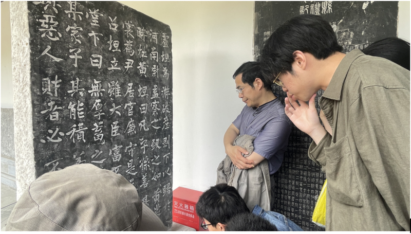 13日上午,考察队到达苏州之行第一站——苏州文庙(苏州碑林博物馆)。最先映入眼帘的是大成殿,同学们在志愿者徐升老师的讲解下,了解古代孔庙的建筑结构和祭祀孔庙的礼乐文化。接着同学们来到碑刻区,其中最引人瞩目的是“四大宋碑”——地理图、天文图、帝王绍运图、平江图,在苏州科技大学的周扬波教授和我校杨光老师的讲解下,同学们从碑文中了解到了南宋时期苏州的城市规划设计和科举文化,充分感受到了古人的智慧。此外,师生还对“清风堂廉石文化陈列”的部分碑文进行了研读,感受到古人寄托于碑文的劝学、训导之心,同学们从中不仅看到了范仲淹、谢绛等名人中举的记载,还见证了苏州在科举之路上的崛起之史,感触颇深。