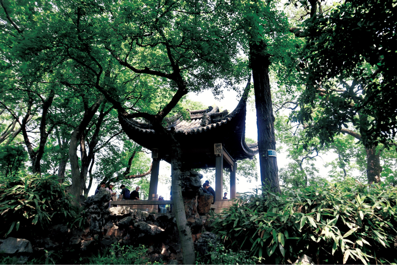 随后,同学们步行至碑刻博物馆东侧的沧浪亭。沧浪亭位于苏州城南三元坊附近,面积约为16亩,是现存苏州园林中历史最悠久、且唯一基本保持了旧有规模和风貌的园林。全园布局自然和谐,被誉为“写意山水园”的典范,与狮子林、拙政园、留园一起列为苏州四大园林。沧浪亭内,由原主人苏舜钦和其朋友欧阳修共同创作的楹联在园内最高点见证来往游人,“清风明月本无价,近水远山皆有情”,既体现了原主人营建园林时对自然的憧憬与敬畏,又留下了昭示先代文人之间深情厚谊的轶事。沧浪亭在历史上数次易手,章惇、韩世忠都曾成为过这里的主人,岁月更迭,这里的山水更具历史的厚重,向后来者显示着历史的风雅。