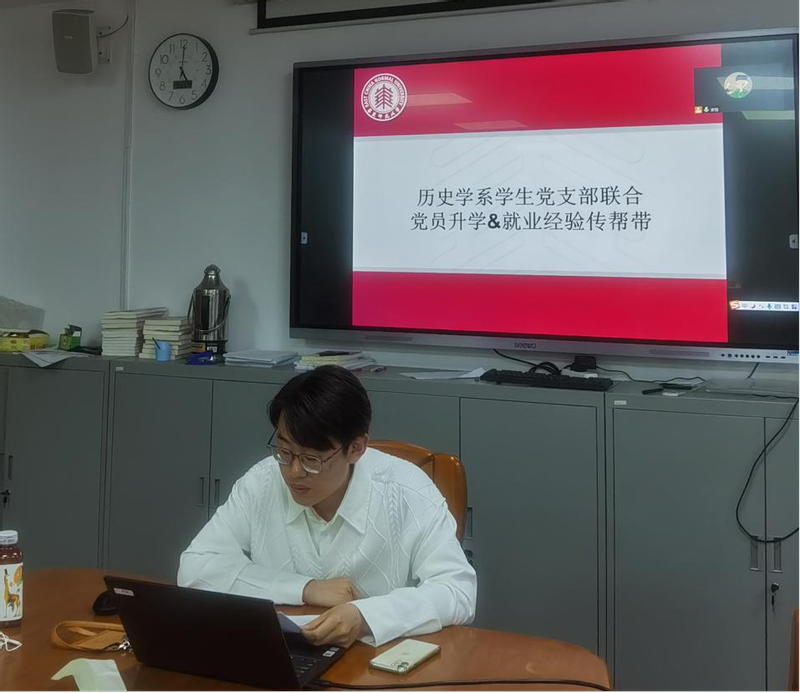 活动共分为两场。第一场聚焦“博士申请”,杨猛、周传龙、孙帜、舒鸿翔四位党员作经验分享;第二场聚焦“教师招聘”,陈映达、汪林峰、陈司琪、马灼垚、谢而馥、张璐璐、崔钰航七位党员作经验分享。活动由硕士研究生第一党支部崔钰航主持。