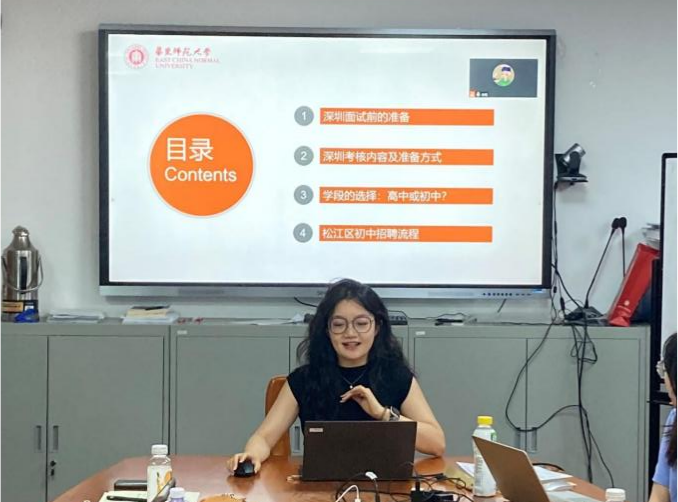 在第二场教师招聘经验分享交流中,“准教师们”就杭州、上海、深圳等地的教师招聘流程与准备环节做了详细介绍。陈映达强调了利用企业微信与各地区教育局官网等媒介的重要性,同时就如何进行准备进行了经验分享。汪林峰向大家分享了求职深圳教师岗位时的小技巧,从简历到自我介绍,从主动出击到列好计划表格,一点点、一条条,向大家介绍自身所获得的实际经验。陈司琪则就初中与高中的抉择向大家做了详细说明,建议大家实地去进行实习,体验过后方能有坚定的选择。马灼垚向大家介绍了自己在四川、苏州等多地的求职经验,建议同学们在日常学习中要多途径地提升自身教学能力、夯实教学基础。谢而馥着重向大家分享了简历制作的经验,比如突出毕业学校、荣誉以及实习实践内容等,以及群面时要自然大方,不要怯场等关键点。张璐璐则分享了在上海市区高中求职的经验,解答了大家关于薪酬待遇等各方面的疑惑。面对大家即将进行或正在进行的实习实践,崔钰航结合王艺群的想法,提出根据教材、教学参考自主备课、备课时多关注内容主旨、多听课等七条建议,还向大家推荐了《怎样上好历史课》《高中历史怎样教》等教学参考书。她指出,“求职是基于充分自我认知的勇敢,时下如此,今后亦然。”