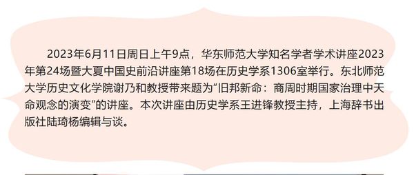 一一最后,谢老师总结道:无论是从受天命的主体、客体,还是天命政治的国家治理内涵来看,商周天命观的演变乃是一种继承发展为主要特征的“损益”之变,而非一种政治文化的“剧变”。